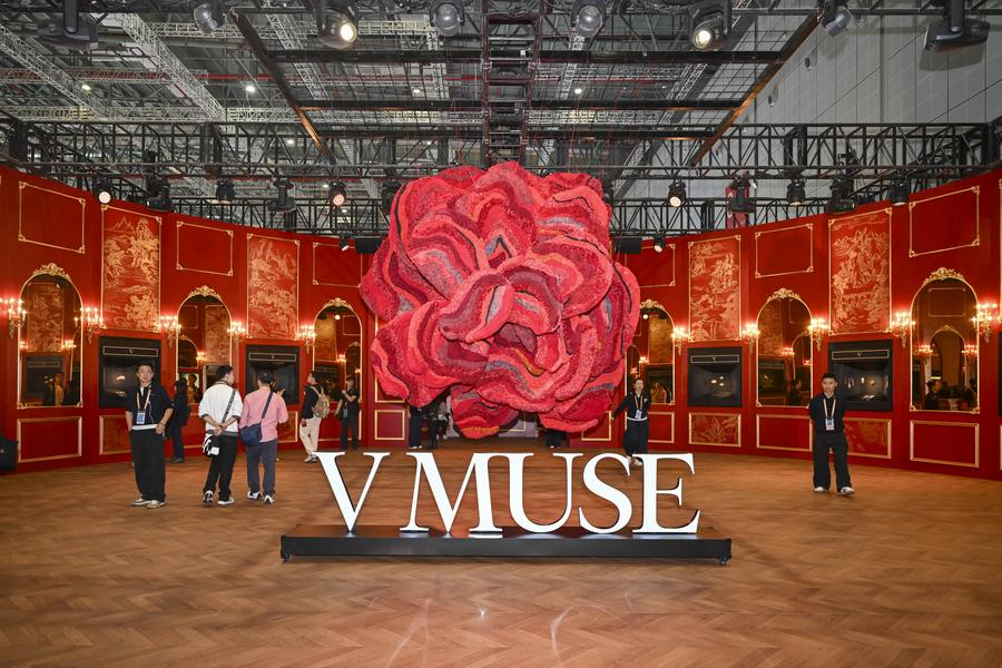 Visitors take photos at the National Exhibition and Convention Center (Shanghai), the main venue for the eighth China International Import Expo (CIIE), in east China's Shanghai, Nov. 5, 2025. (Xinhua/Lu Peng)Visitors walk past a themed-decoration of the eighth China International Import Expo (CIIE) in east China's Shanghai, Nov. 5, 2025. (Xinhua/Ren Pengfei)People visit the China Pavilion at the eighth China International Import Expo (CIIE) in east China's Shanghai, Nov. 5, 2025. (Xinhua/Chen Haoming)