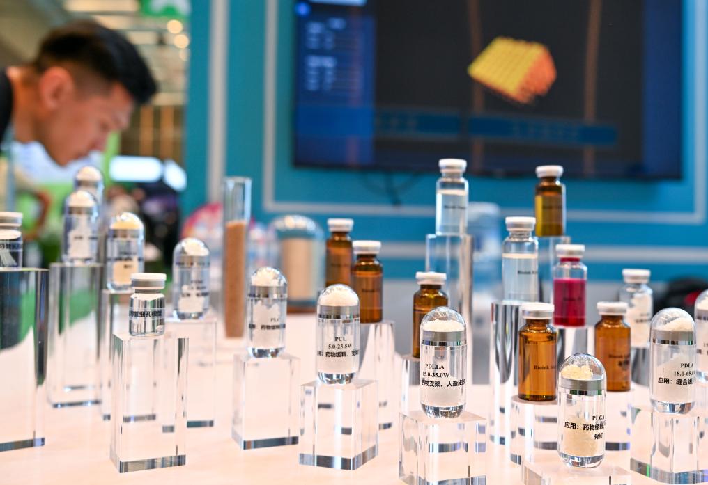 11月3日,观众在广交会展馆捷诺飞生物展台观看生物3D打印的样品。