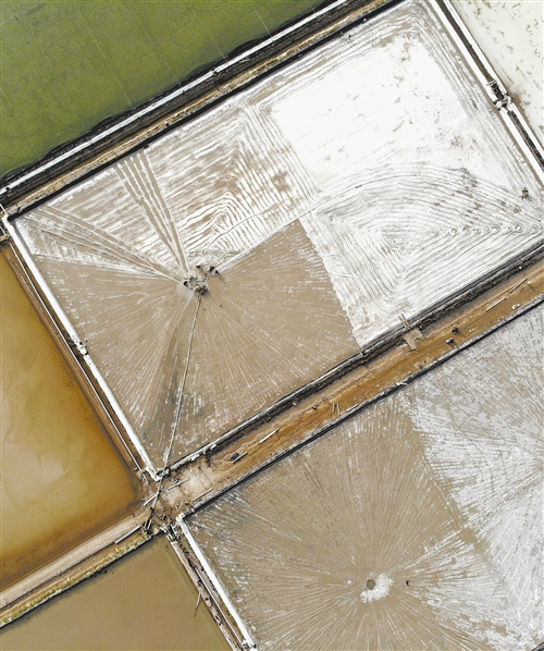 江苏连云港万亩盐田进入秋季扒盐作业期