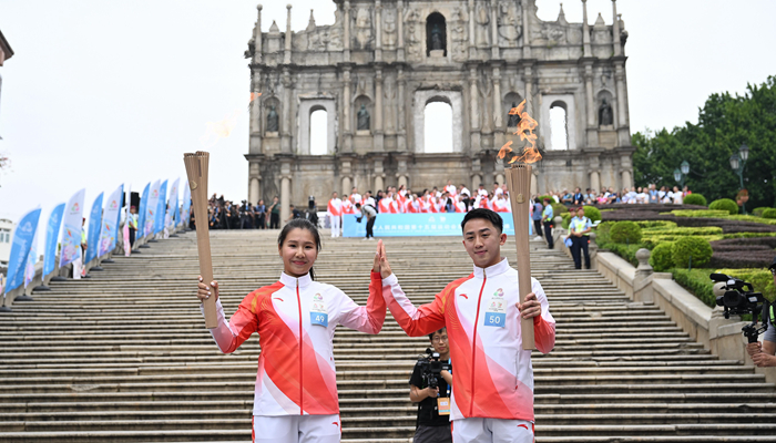 第十五屆全國運(yùn)動(dòng)會(huì)澳門賽區(qū)火炬?zhèn)鬟f活動(dòng)2日舉行。作為澳門首位全運(yùn)會(huì)獎(jiǎng)牌得主,空手道運(yùn)動(dòng)員郭建恒擔(dān)任最后一棒火炬手。