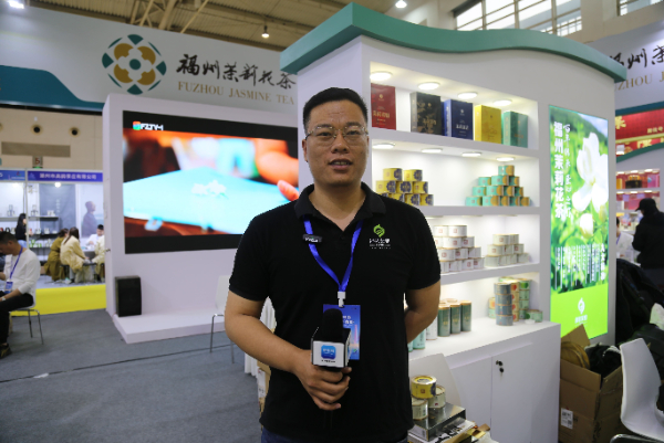 绿茗茶业在本次茶博会带来了茉莉雪芽、茉莉金尊、茉莉花魁等多款产品,负责人魏小钧表示,绿茗茶业成立于1998年,是福建少数几家自有茉莉花基地的茶叶公司之一。跟北派茉莉花茶相比口感上会有所不同,福州绿茗茉莉花茶有淡淡的冰糖甜。