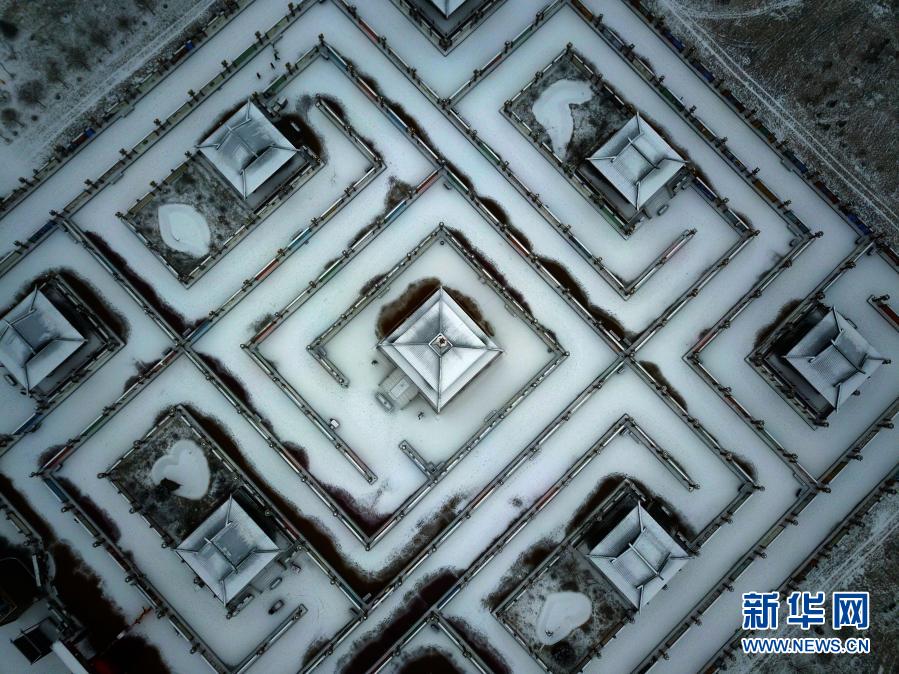 2月28日拍攝的甘肅省張掖市甘州區堿灘鎮古城村雪景(無人機照片)。新華社發(成學磊 攝)