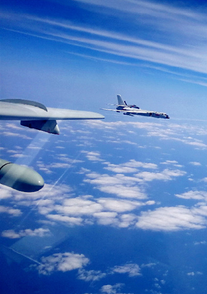 ??? 4月19日,中國空軍轟-6K等多型戰機執行“繞島巡航”任務。中國空軍4月21日向海內外發布多語種宣傳片《戰神繞島新航跡》。空軍戰神轟-6K等戰機近日連續3天“繞島巡航”的震撼畫面,在宣傳片中集中展現,彰顯了空軍飛行員維護國家主權和領土完整的意志能力。新華社發(秦軍 攝)