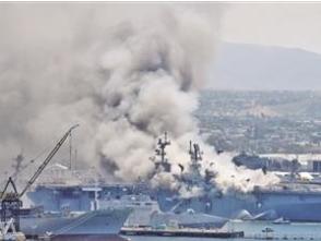 ????“好人理查德”號兩棲攻擊艦火災(zāi)現(xiàn)場濃煙滾滾