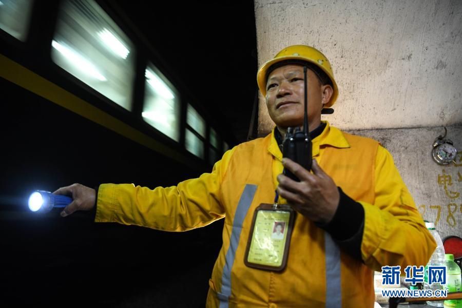 在廣西河池境內黔桂鐵路線上的鄧山隧道,中國鐵路南寧局集團有限公司柳州工務段的4名看守工輪換值班,依靠手電筒在黑暗中穿行,及時巡查隧道中可能出現的各種隱患,確保每天經隧道運行的59趟客貨列車春運安全。鄧山隧道全長773米,是一個需要人員全天候看守的鐵路隧道。