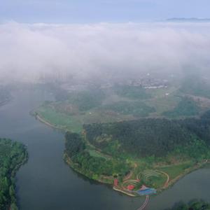 5月8日,貴陽市觀山湖區的高樓被霧氣籠罩(無人機照片)。