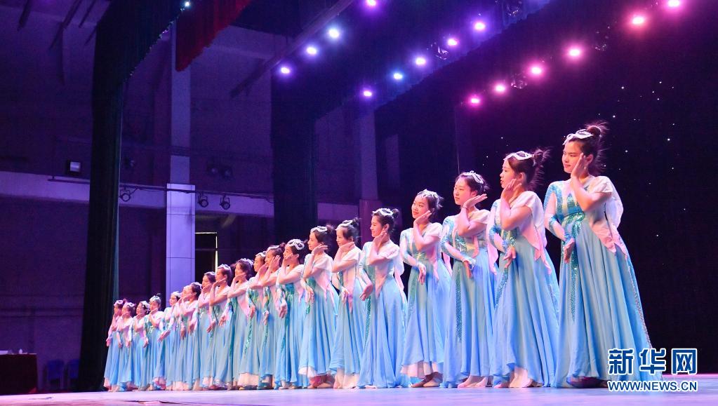 天津理工大學聾人工學院的舞蹈隊員們在學校的劇場里進行彩排(5月10日攝)。