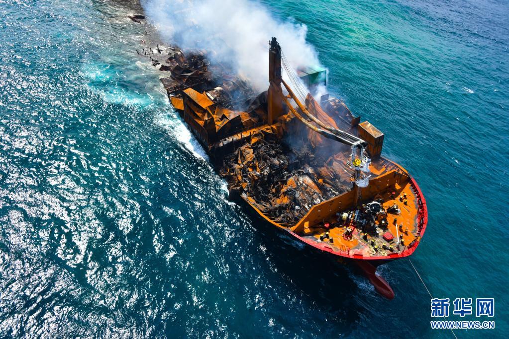 6月2日,斯里蘭卡總統(tǒng)戈塔巴雅下令將起火貨船“X-PRESS PEARL”號拖向遠(yuǎn)離科倫坡港的深海區(qū),以防引發(fā)更大的環(huán)境災(zāi)難。“X-PRESS PEARL”號貨船5月20日抵達(dá)科倫坡港西北約9.5海里錨地時發(fā)出火警求救信號。斯里蘭卡海洋環(huán)境保護(hù)局官員5月28日表示,在科倫坡港附近起火燃燒的“X-PRESS PEARL”號貨船預(yù)計將會引發(fā)嚴(yán)重環(huán)境災(zāi)難。新華社發(fā)(斯里蘭卡空軍媒體處供圖)