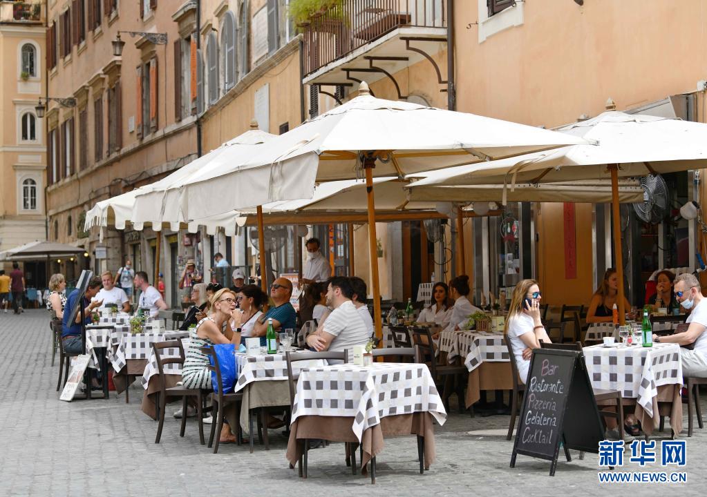 6月24日,人們在意大利羅馬一家餐館的戶外區(qū)域消費。