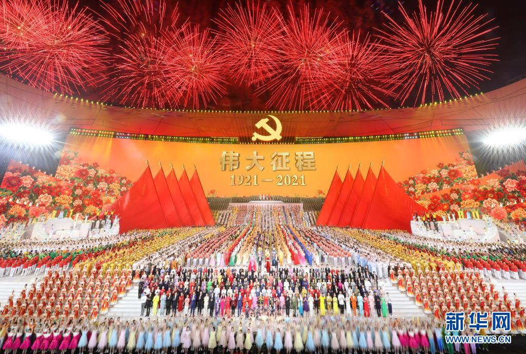 6月28日晚,慶祝中國(guó)共產(chǎn)黨成立100周年文藝演出《偉大征程》在北京國(guó)家體育場(chǎng)盛大舉行。這是文藝演出結(jié)束,全場(chǎng)共同高唱《沒(méi)有共產(chǎn)黨就沒(méi)有新中國(guó)》。