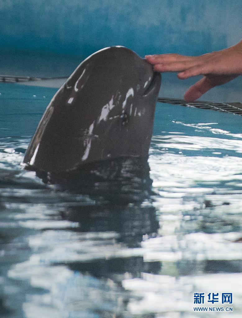 7月5日,中科院水生所白鱀豚館飼養(yǎng)員對長江江豚進(jìn)行訓(xùn)練。新華社記者肖藝九攝