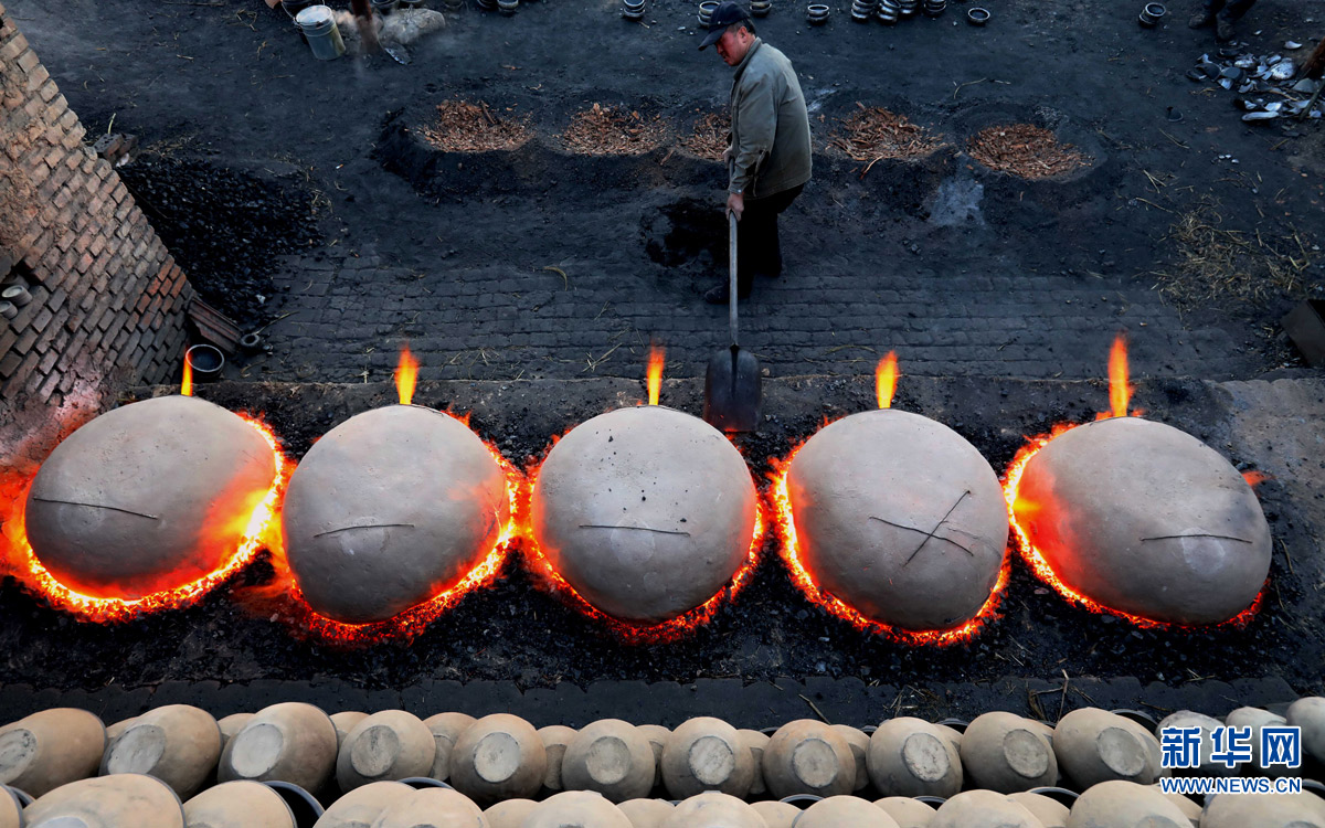 1月13日,在河北張家口蔚縣南留莊鎮(zhèn)白河?xùn)|村,王啟杰在青砂器燒制爐前工作。65歲的王啟杰是白河?xùn)|村一帶青砂器作坊“掌門人”、蔚州青砂器王氏家族的第四代傳承人,自幼跟父親學(xué)習(xí)青砂器制作,堅(jiān)持用傳統(tǒng)手藝燒制青砂器至今。河北省非物質(zhì)文化遺產(chǎn)項(xiàng)目——蔚縣青砂器是當(dāng)?shù)貍鹘y(tǒng)民間手工藝器皿,歷史悠久,俗稱砂鍋、砂壺、砂吊等,是熬中草藥、燒水、做飯、煮肉、熱酒的上好器皿。河北張家口蔚縣南留莊鎮(zhèn)白河?xùn)|村一帶是蔚縣青砂器的發(fā)源地。當(dāng)?shù)厣缴嫌胸S富的天然瓷土,其土質(zhì)有黏性,細(xì)膩、柔軟、可塑性強(qiáng),俗稱“矸子土”,是制作青砂器的天然資源。從碾碎“矸子土”到拉坯,再到燒制出成品,一件蔚縣青砂器的制作,需要大量繁瑣的工序。在燒制過程中,查看燒制的火候又稱“看火”,是個(gè)重要環(huán)節(jié)——“看火”是否準(zhǔn)確,直接決定青砂器燒制質(zhì)量的好壞,這個(gè)“絕活”一般是由燒制青砂器的傳承人一輩一輩傳下來(lái)的。新華社記者 楊世堯 攝