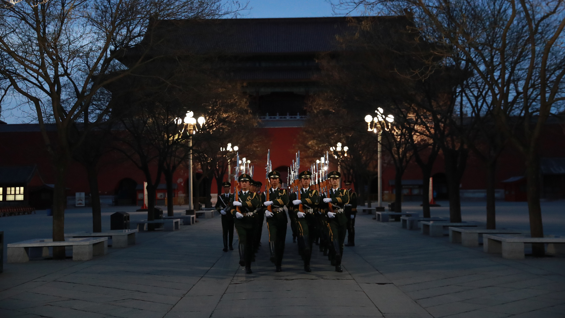 2017年3月5日,第十二屆全國(guó)人民代表大會(huì)第五次會(huì)議在人民大會(huì)堂開幕。凌晨4點(diǎn)的長(zhǎng)安街,夜色還未褪去,位于故宮午門前一側(cè)的一座武警營(yíng)區(qū)內(nèi),卻已是燈火通明。一群武警戰(zhàn)士穿起禮兵服、握緊鋼槍開始訓(xùn)練。晨曦微露,從金水橋到國(guó)旗桿下,138步、2分07秒、365天,無論雨雪風(fēng)霜、嚴(yán)寒酷暑,他們都守護(hù)著五星紅旗冉冉升起。這支部隊(duì)就是武警北京總隊(duì)天安門支隊(duì)國(guó)旗護(hù)衛(wèi)隊(duì)。