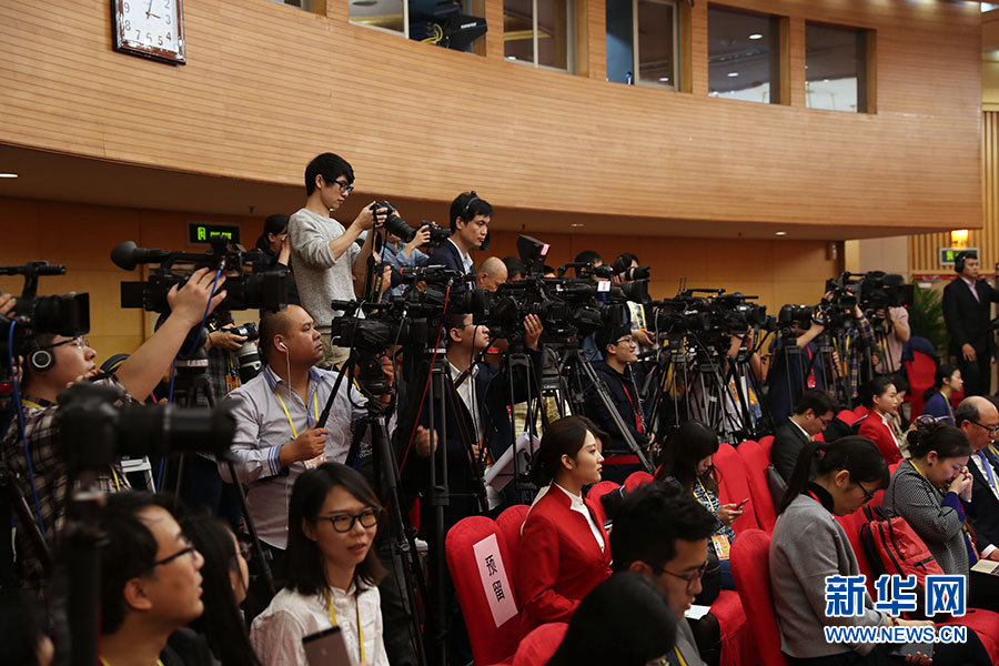 ??? 10月20日,十九大新聞中心舉辦集體采訪活動,主題為“文化發(fā)展開創(chuàng)新局面”。圖為現(xiàn)場記者。新華網(wǎng) 陳杰攝
