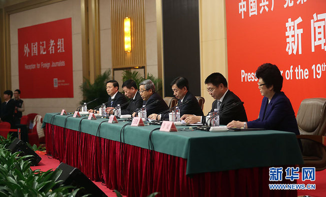??? 10月22日,十九大新聞中心舉辦記者招待會,邀請教育部、民政部、人力資源社會保障部、住房城鄉建設部、國家衛生計生委相關負責人介紹滿足人民新期待,保障改善民生有關情況,并回答記者提問。圖為記者招待會現場。新華網 郝廣鵬攝