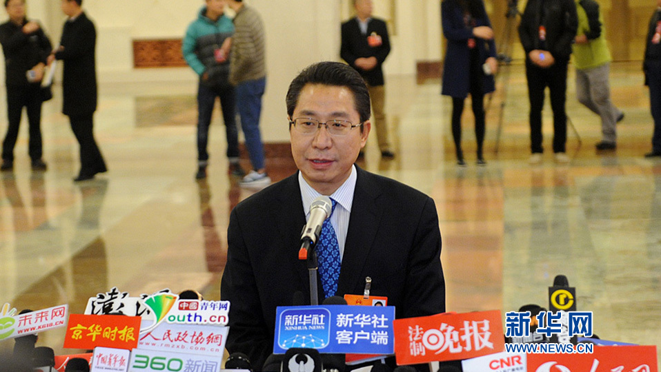 3月13日上午9時,第十二屆全國人民代表大會第四次會議將在人民大會堂舉行第三次全體會議,聽取最高人民法院院長周強關于最高人民法院工作的報告,聽取最高人民檢察院檢察長曹建明關于最高人民檢察院工作的報告。圖為國家知識產權局局長申長雨在部長通道接受采訪。新華網/中國政府網 陳競超 攝
