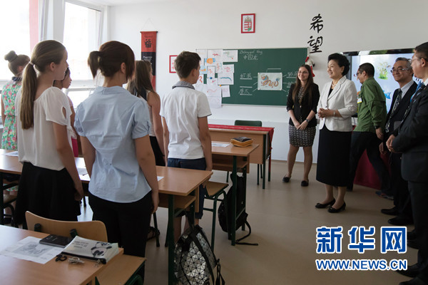 劉延東抵達時,受到了學校師生的熱烈歡迎。劉延東在匈牙利外交與對外經濟部國務秘書易加爾多、匈前總理邁杰希、匈中雙語學校校長埃爾代伊等陪同下參觀了匈孔子學院成果展,聽取匈4所孔子學院院長介紹辦學情況,并饒有興趣地觀摩了匈本土教師如意的漢語教學課程,觀看了學生匯報演出。孩子們用中匈雙語表演的歌曲《春天在哪里》、詩歌朗誦《再別康橋》和體操人體拼字,贏得了陣陣熱烈掌聲。