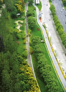 “一軸”指沿錦江從都江堰紫坪鋪至雙流黃龍溪總長200公里的錦江綠道;“兩山”指沿龍門山東側、長度約350公里的龍門山森林綠道,沿龍泉山西側、長度約200公里的龍泉山森林綠道;“三環”分別指沿三環路總長100公里的熊貓綠道,依托環城生態帶、主線總長200公里的錦城綠道,沿第二繞城高速路、總長約300公里的田園綠道。