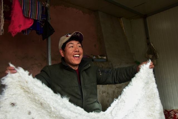 松多村鑲嵌在縣城城郊一條干涸的河谷上。這里干旱少雨,風(fēng)吹黃土漫天,只能種些青稞、土豆為生。“那時(shí)我們家8口人,住的是土坯房,吃的是洋芋,人均耕地面積不足2畝,一年種的莊稼連來年買肥料的錢都不夠。”小學(xué)還沒畢業(yè),旦增加就輟學(xué)在家,重復(fù)著父輩的生活,不到20歲就結(jié)婚生子,同樣靠種地維持生計(jì),日子卻越發(fā)捉襟見肘。