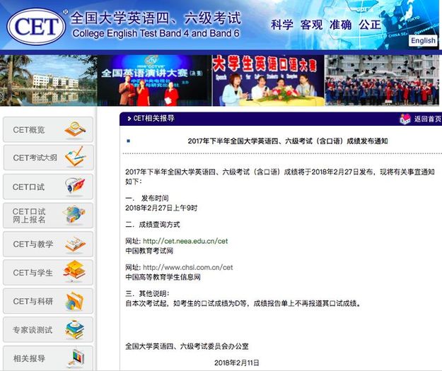 據全國大學英語四、六級考試委員會辦公室發(fā)布的通知,2017年下半年全國大學英語四、六級考試(含口語)成績今天發(fā)布!