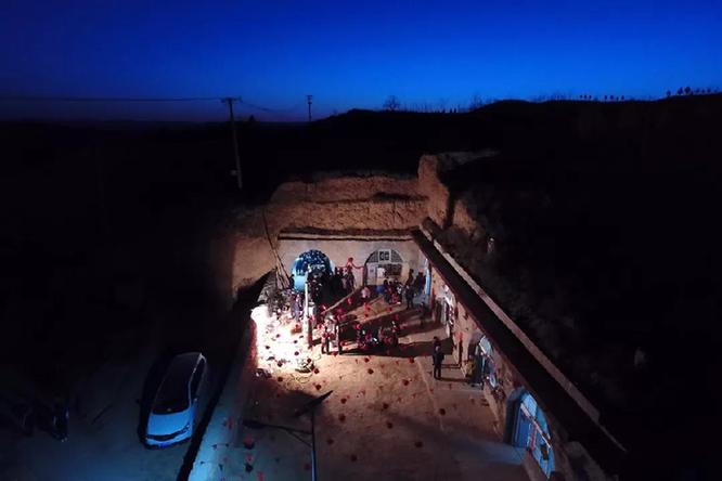 2月22日,在山西省永和縣奇奇里村,村民們在為馮文忠的婚禮準備菜品(無人機拍攝)新華社記者 詹彥 攝