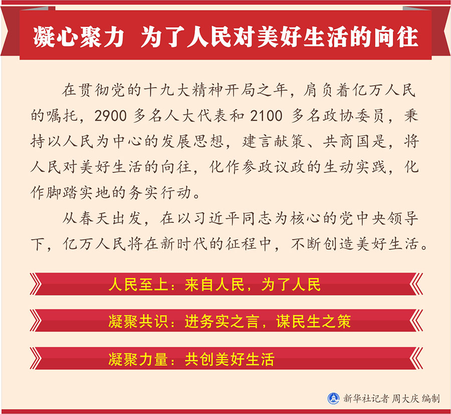 在貫徹黨的十九大精神開局之年,肩負著億萬人民的囑托,2900多名人大代表和2100多名政協委員,秉持以人民為中心的發展思想,建言獻策、共商國是,將人民對美好生活的向往,化作參政議政的生動實踐,化作腳踏實地的務實行動。