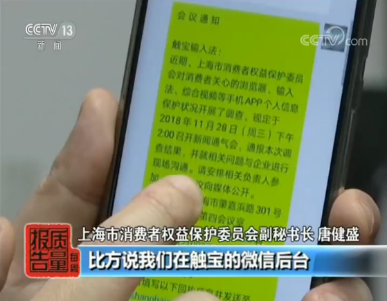 上海市消費者權益保護委員會副秘書長 唐健盛:發(fā)布會的兩天以前,我們就通過各種方法和三家企業(yè)能夠進一步,希望能夠跟他們聯(lián)系上,比方說我們在觸寶的微信后臺進行了留言,并且我們也上傳了PDF版的合照我們的會議通知,那么其它的你比方說獵豹瀏覽器和芒果TV我們也采用了類似的方法,我們希望多種渠道能夠使他們知道這個事,并且也非常希望他們能夠來開我們的發(fā)布會,給到消費者一個明明白白的說法。那么非常遺憾,我們通過消費者溝通的這種渠道沒有獲得企業(yè)應有的響應,我們也認為其實在這一塊企業(yè)也是需要進一步加強的。