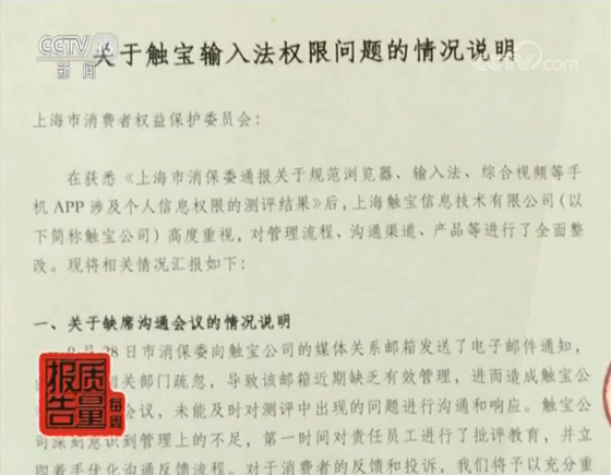 上海市消費者權益保護委員會副秘書長 唐健盛:我們都用了消費者跟企業(yè)溝通的一些渠道,也就是說它在App或者它的官網(wǎng)上面明示的一些郵箱傳真等等。但是我們非常遺憾地看到,這些通知很多企業(yè)都沒有得到足夠的重視,或者說我們這次也了解到,有些企業(yè)它根本和消費者溝通的郵箱可能是幾個月甚至于大半年都沒有去看過的。在隨后的媒體會上,上海市消保委正式通報了對18款手機應用軟件App的評測結果,最終公布了“獵豹瀏覽器,觸寶輸入法和芒果TV視頻”這三款App申請權限存在找不到對應功能等問題。據(jù)介紹, 直到這場媒體會之前,獵豹、觸寶和芒果TV這三家相關企業(yè)對于上海市消保委的多方聯(lián)系,始終沒有回應,也沒有出席相關的技術溝通會。