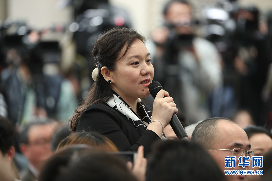 3月4日,十三屆全國人大一次會議在人民大會堂新聞發布廳舉行新聞發布會,由大會發言人張業遂就大會議程和人大工作相關的問題回答中外記者的提問。圖為新華社記者提問。新華網/中國政府網 翟子赫 攝