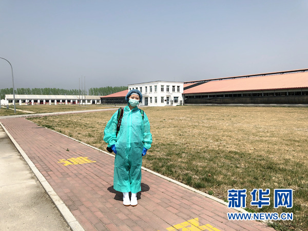 圖為記者穿戴消毒衛(wèi)生裝備進入良種場采訪。 新華網馮文雅/攝