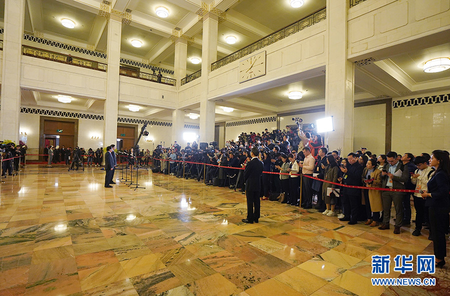 ??? 3月5日,第十三屆全國人民代表大會第二次會議在北京人民大會堂開幕。這是全國人大代表在“代表通道”接受采訪。新華網/中國政府網?劉廈 攝