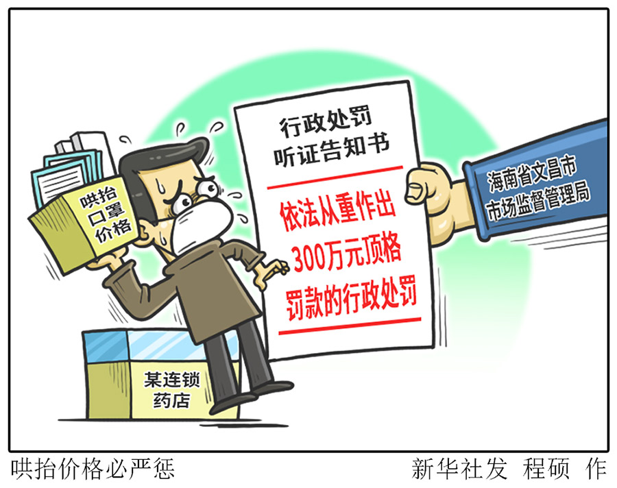 新華社???月6日電(記者吳茂輝)記者6日從海南省市場(chǎng)監(jiān)督管理局獲悉,近日,海南一九堂藥品連鎖經(jīng)營(yíng)有限公司因哄抬價(jià)格,被文昌市市場(chǎng)監(jiān)督管理局下達(dá)《行政處罰聽證告知書》。根據(jù)這份告知書,這家公司將被罰300萬(wàn)元。