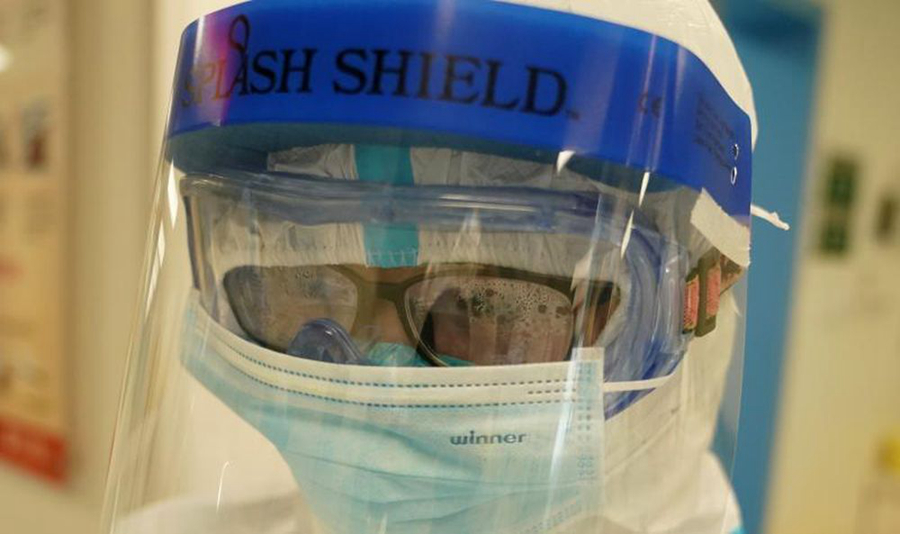 “全副武裝”的護士漆思河眼鏡里產生了大量水汽。新華社記者王毓國 攝