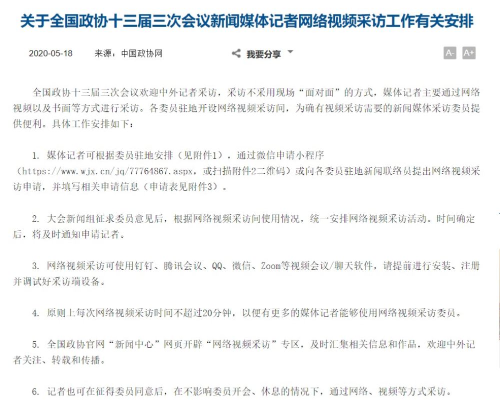 兩會(huì)開幕在即,5月18日,中國政協(xié)網(wǎng)發(fā)布了這樣一則通知: