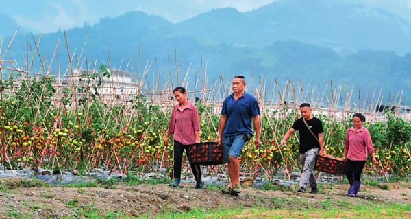 貴州榕江“壩區經濟”助農增收。這是6月2日,農民在貴州省榕江縣車江壩區采收西紅柿 楊文斌攝 / 本刊