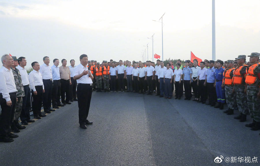 習近平總書記19日下午在安徽省合肥市考察調研。他在肥東縣十八聯(lián)圩生態(tài)濕地蓄洪區(qū)巢湖大堤羅家疃段,察看巢湖水勢水情,看望慰問防汛抗洪一線人員、先進典型代表和參加抗洪搶險的解放軍、武警部隊官兵。當天下午,習近平在合肥還參觀了安徽創(chuàng)新館和渡江戰(zhàn)役紀念館,了解安徽省科技創(chuàng)新和新興產(chǎn)業(yè)發(fā)展情況,重溫革命歷史、緬懷革命先烈。(文字記者:張曉松 攝影記者:鞠鵬 王曄 燕雁)