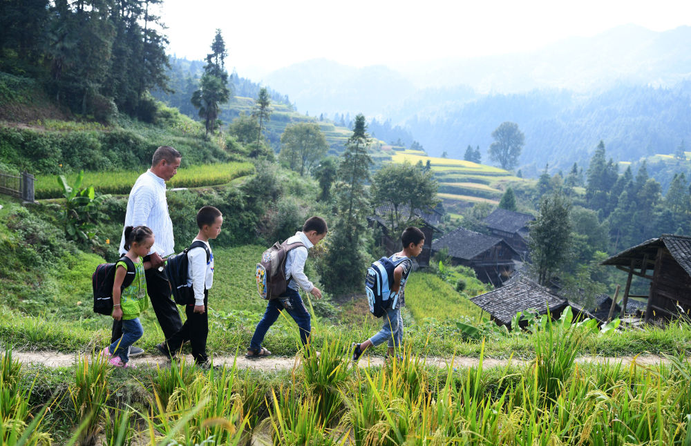 老師扈志生陪伴學(xué)生一同上下學(xué)