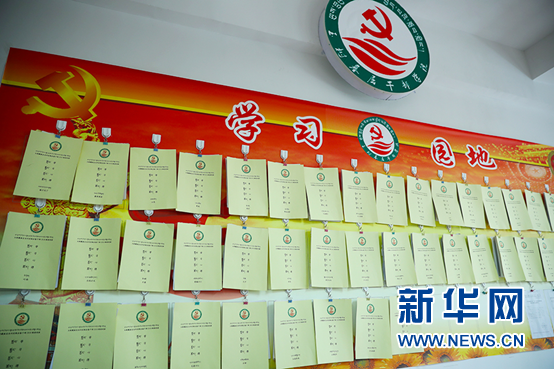 玉樹州基層干部學院學習園地展示著學員們的學習心得。新華網(wǎng)記者焦鵬攝