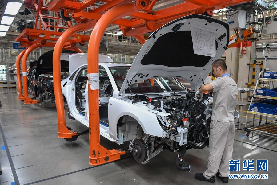 工人在一汽-大眾長春基地總裝車間裝配車輛(9月1日攝)。9月15日,國家統(tǒng)計(jì)局?jǐn)?shù)據(jù)顯示,8月份,全國規(guī)模以上工業(yè)增加值同比增長5.6%,增速比7月份加快0.8個百分點(diǎn)。1至8月份,全國規(guī)模以上工業(yè)增加值同比增長0.4%,增速實(shí)現(xiàn)由負(fù)轉(zhuǎn)正。 新華社記者 張楠 攝
