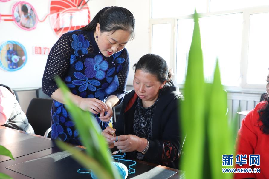 借助技術培訓,黎明村村民李明鴿成為遠近聞名的“編織能手”,依靠一根鉤針,編織抱枕、圍巾、衣服等,為自己和鄉親們開拓了一條致富路。