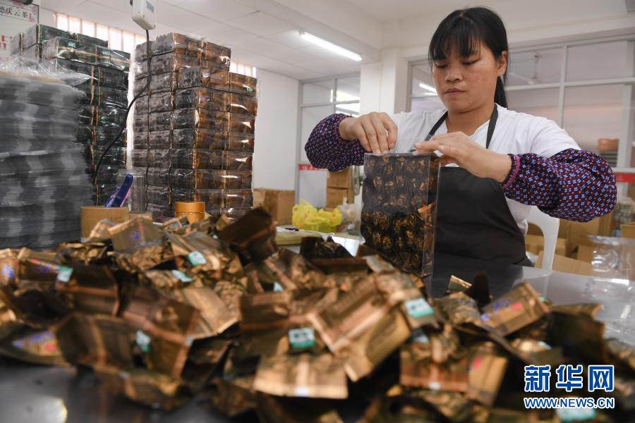 10月27日,在福建省安溪縣感德鎮槐川村的慶蕓茶葉專業合作社,工人在包裝鐵觀音茶葉。新華社記者 宋為偉 攝