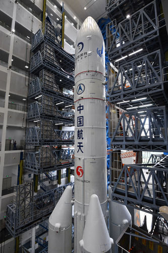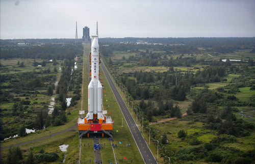這是11月17日在中國文昌航天發(fā)射場拍攝的長征五號遙五運(yùn)載火箭。新華社記者 郭程 攝