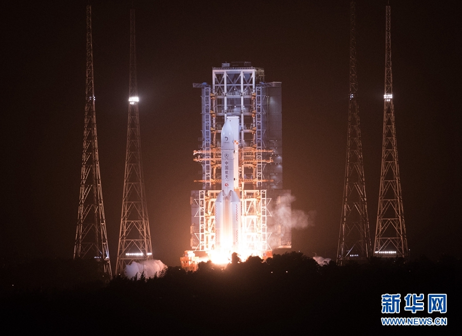這是長征五號遙五運載火箭發射升空。新華社記者張麗蕓攝
