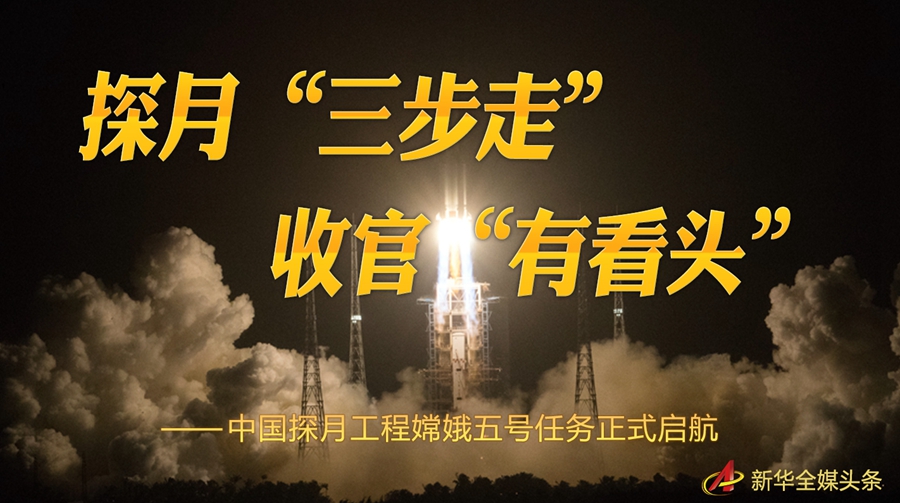 新華社海南文昌11月24日電? 題:探月“三步走” 收官“有看頭”——中國探月工程嫦娥五號任務正式啟航