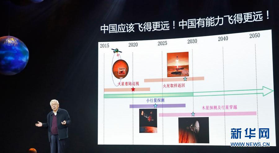 “這次嫦娥五號肩負著月球采樣返回的光榮使命,我們的天問一號也正在飛向火星的路上,我們還要飛得更遠,去探測木星、小行星并建設我們的國際月球科研站。中國已經昂首進入了深空探測的新時代?!睔W陽自遠說。