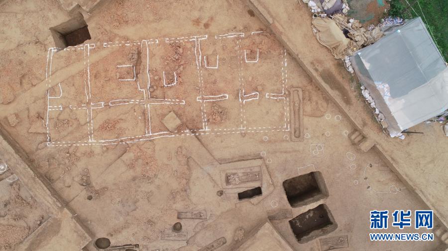 圖為河南南陽(yáng)黃山遺址部分發(fā)掘現(xiàn)場(chǎng)航拍圖(2019年6月27日攝,無(wú)人機(jī)照片)。新華社發(fā)(河南省文物考古研究院供圖)