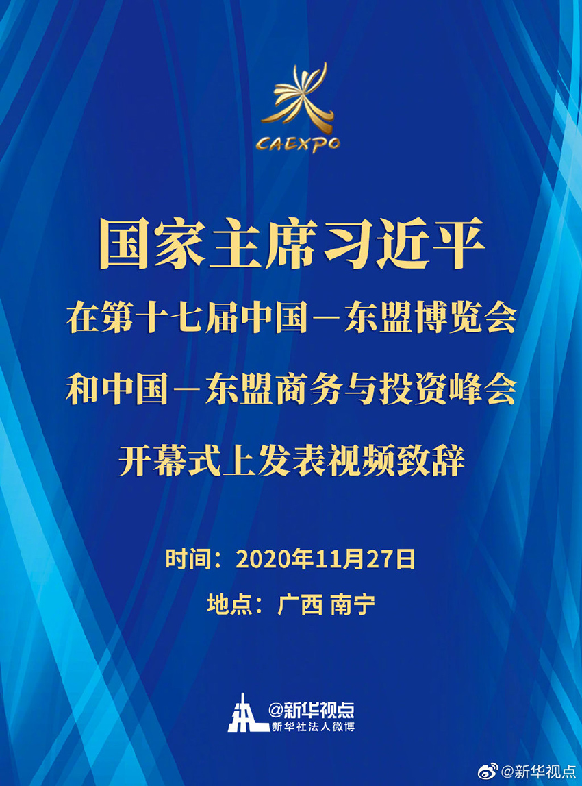 習近平在第十七屆中國-東盟博覽會和中國-東盟商務與投資峰會開幕式上發(fā)表視頻致辭