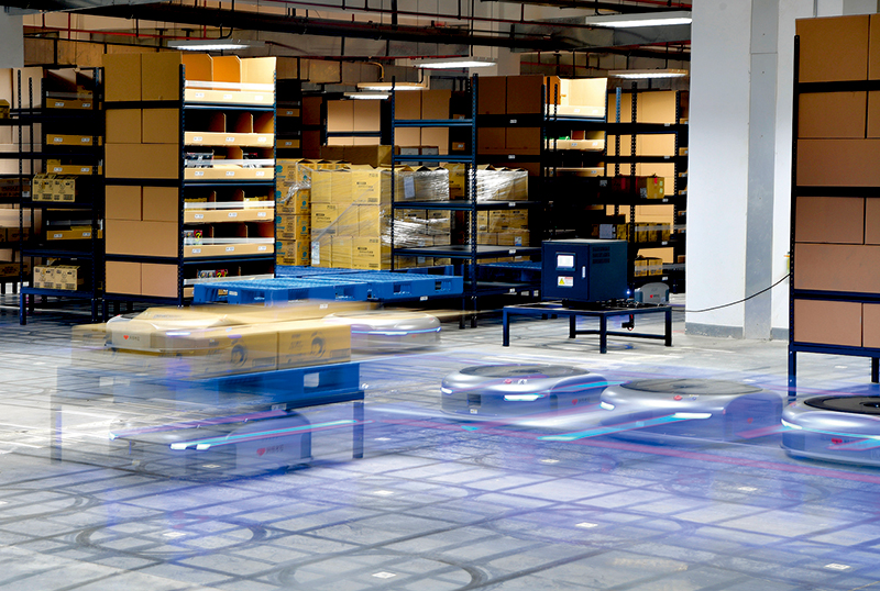 河南保稅物流中心,分揀機(jī)器人進(jìn)行包裹分揀工作(2019年1月14日攝) 李嘉南攝