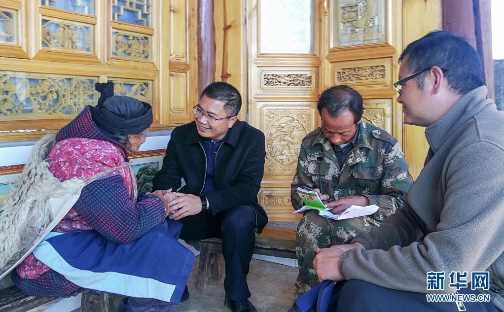 聶金輝(左二)在劍川縣羊岑鄉金坪村走訪建檔立卡貧困戶(2018年11月20日攝)。新華社發(劍川縣融媒體中心供圖)