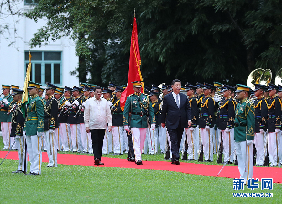 會談開始前,習近平出席杜特爾特在總統(tǒng)府前草坪舉行的隆重歡迎儀式。